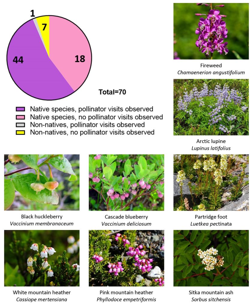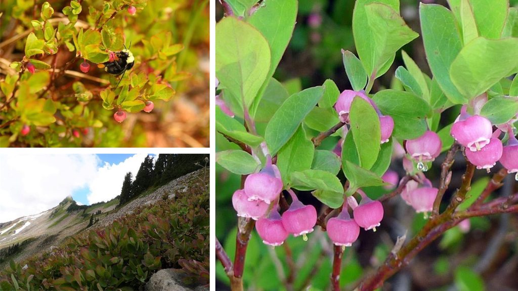 Huckleberries and blueberries are almost completely dependent on early season bumble bees for pollination (94% of all pollinators observed on these shrubs). Without bumble bee pollination, it is very likely that berry production would decline substantially in mountain meadows, affecting a major food source for bears and other berry foragers.